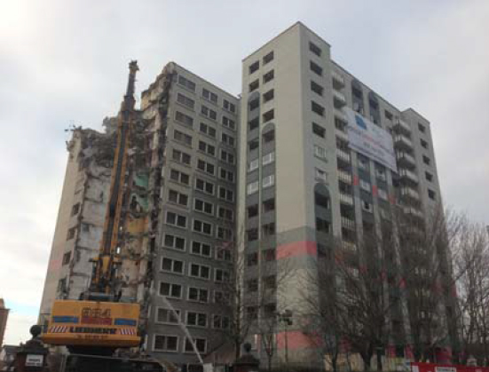 3 adet 15 katlı, 2 adet 11 katlı yüksek yapının yıkım çalışmaları sonucu ödül kazanılmış bir projedir. TDS`nin süper yüksek erişimli 67 m lik iş makinesi kullanılmıştır.